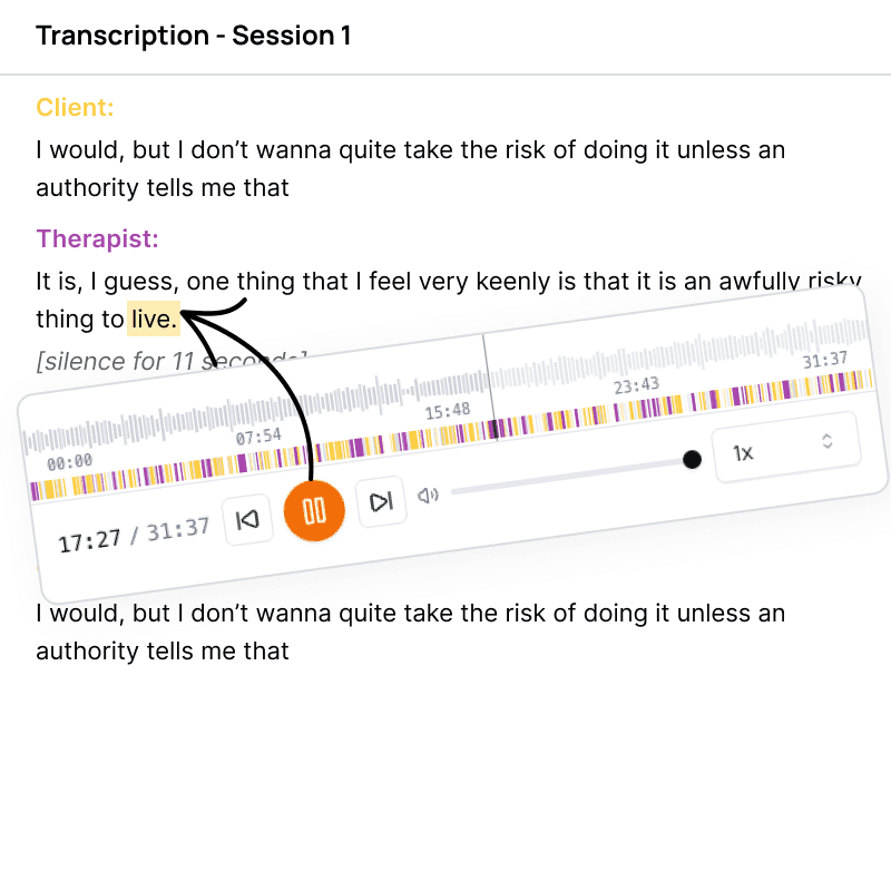 - Interactive transcripts, listen while you read the transcript - Review significant therapeutic moments - Store your transcripts for supervision